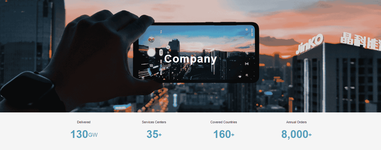 “Jinko Solar Co., Ltd. (the “Company”, or “Jinko Solar”) (SSE: 688223) is one of the most famous and innovative solar technology companies in the world. Its business covers the core links of the photovoltaic industry chain, focusing on the R&D of integrated photovoltaic products and integrated clean energy solutions. At present, Jinko Solar’s products serve more than 3,000 customers in more than 160 countries and regions around the world, and the company has ranked No.1 in global module shipments from 2016 to 2019. By the end of 2022, the cumulative module shipments of Jinko Solar have exceeded 130GW.Jinko Solar is an industry opinion leader under various international frameworks such as B20, and it is also one of the first solar energy companies to join the RE100 green initiative.