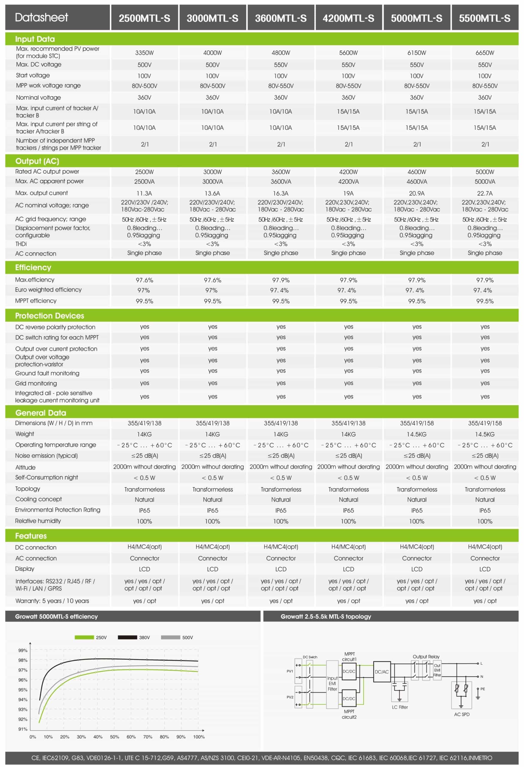 Thông số kỹ thuật INVERTER HÒA LƯỚI GROWATT 5KW (5500MTL-S)