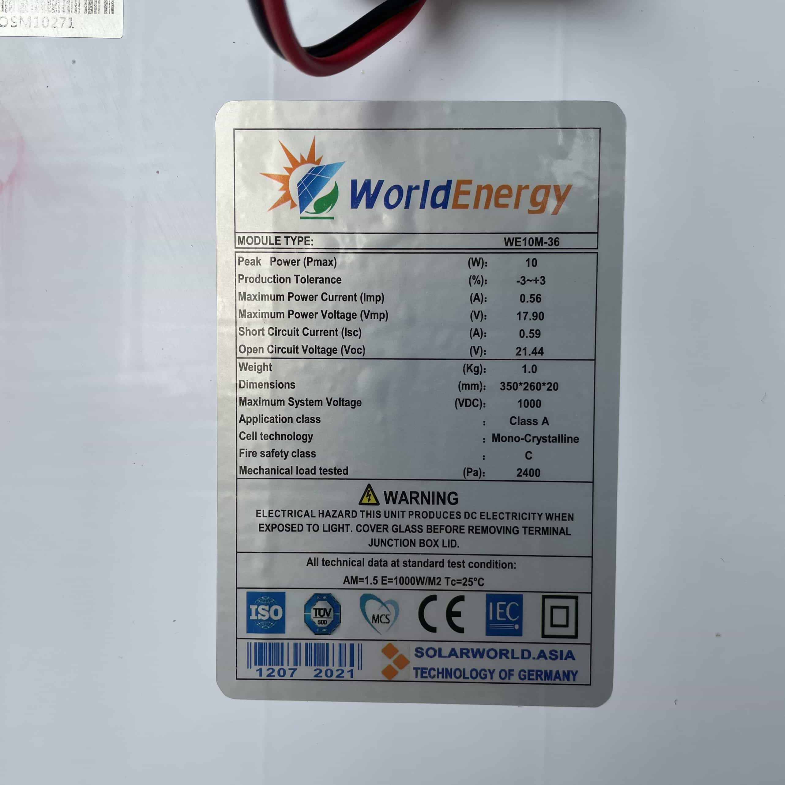 TẤM PIN MẶT TRỜI MONOCRYSTALLINE 10W WORLDENERGY